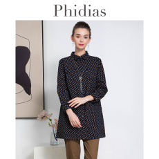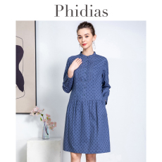 Phidias波点连衣裙女2024春季新款商场同款修身显瘦长袖中款裙子