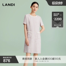 [商场同款]LANDI蓝地紫罗兰撞色圆领短袖直筒连衣裙女春夏新品