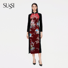 SUSSI古色冬季商场同款新年红装新中式丝绒婚宴连衣裙女