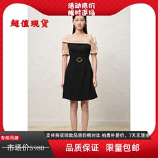 【商场同款】HPLY荷比俪2024秋季新款女缎光一字小荡领收腰连衣裙