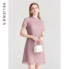 海兰丝2024夏新品上市商场同款复古改良旗袍国风连衣裙雪柳粉大码