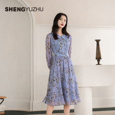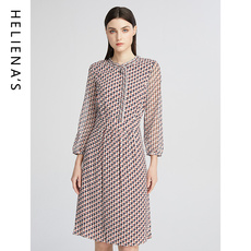 海兰丝桑蚕丝连衣裙商场同款秋季新款收腰显瘦印花连衣裙女