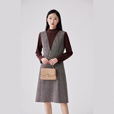 【播奥莱】播商场同款格子连衣裙女春秋中长款收腰裙子BDQ3LD0705