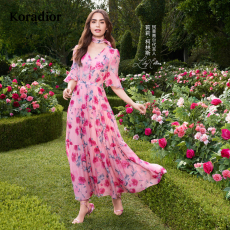 【明星同款 100桑蚕丝】珂莱蒂尔商场同款春度假风玫瑰连衣裙女