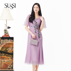 SUSSI/古色夏商场同款玫红色宴会高级感刺绣连衣裙女
