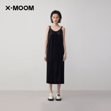 【商场同款】X--MOOM春季新款丝绒吊带小黑裙中长显瘦连衣裙女