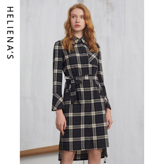 海兰丝奢睿春夏新款商场同款英伦风职业黑色格子中长款时尚连衣裙