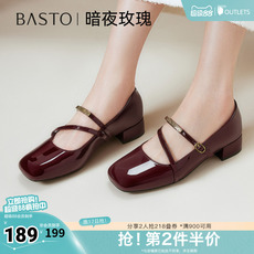 【沈月同款】百思图莫奈花园26春商场新款法式玛丽珍鞋女红色单鞋