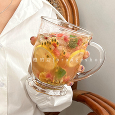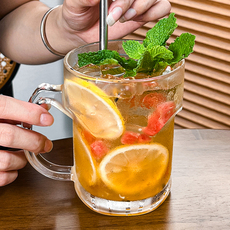 带把超大容量水果茶杯玻璃杯ins风果汁饮料喝水个性创意啤酒杯子