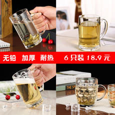强化玻璃杯茶杯带把手家用新款啤酒杯子耐高温扎啤喝水男泡茶水杯
