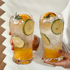 高颜值树纹玻璃杯大容量喝水饮品杯家用咖啡杯果茶杯精酿啤酒杯子