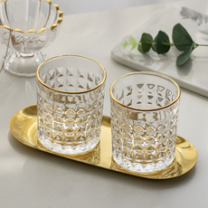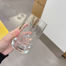 锤目纹金边玻璃杯啤酒杯套装创意牛奶杯ins水杯家用果汁杯早餐杯