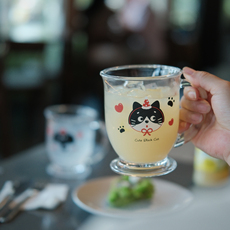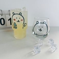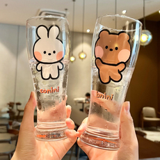 韩系INS风可爱小猫狗玻璃高脚杯创意果汁饮料杯牛奶咖啡杯啤酒杯