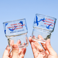 自由一生蓝色飞鸟玻璃水杯原创鲸鱼咖啡杯啤酒杯子早餐牛奶杯家用