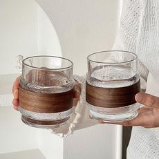 创意旋转威士忌杯子加厚个性不倒翁玻璃酒杯树皮竖条纹洋酒啤酒杯