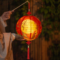 喜庆节日手提发光纸灯笼圆形福字古风传统中国风氛围走廊装饰花灯