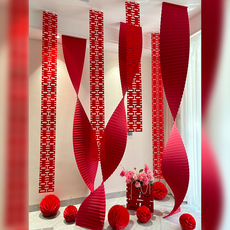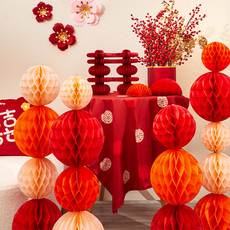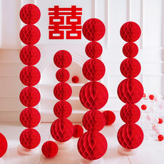 蜂窝球立柱红色结婚拍照道具装饰婚房客厅纸灯笼拉花婚礼布置套装