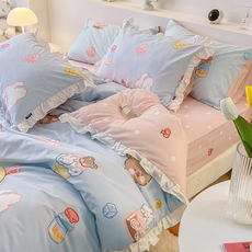 ins萌系可爱卡通全棉四件套100纯棉被套床单学生宿舍床上用品