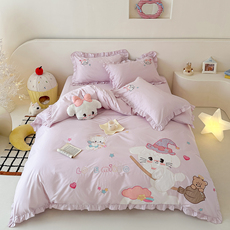 紫罗兰ins减龄可爱风40支全棉卡通印花四件套纯棉学生宿舍三件套