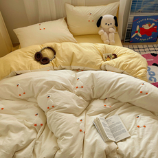 ins水洗棉四件套可爱卡通毛巾绣床上用品波点儿童被套床单三件套4