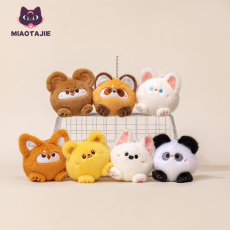 可爱团团喵挂件尾巴吱吱叫猫咪毛绒玩偶钥匙扣毛绒团子礼物ins
