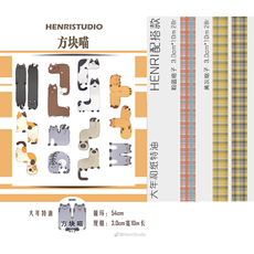 分装 HenriStudio方块喵黄灰/粉蓝格子大年手帐和纸胶带无离型纸
