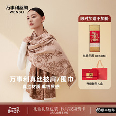 [新年礼物]万事利25秋冬新款山羊绒围巾女送礼保暖羊绒披肩风华锦