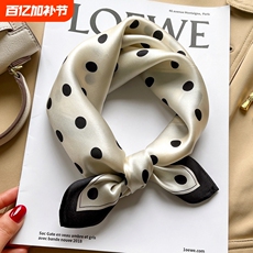 高级感波点丝巾100%真丝桑蚕丝小方巾女新款洋气时尚围巾领巾高档
