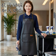 火锅店围裙上班专用防水防油PU皮工作服女士厨房家用定制logo印字