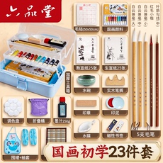 六品堂国画颜料初学者套装小学生中国画颜料用品全套工具毛笔材料12色24色专业水墨画小学生入门美术生专用