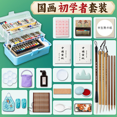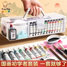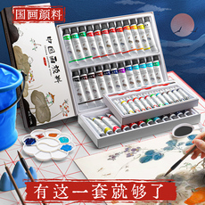 中国画颜料12色初学者套装水墨画专用国画用品工具箱全套毛笔小学生用儿童入门二三年级美术材料包24色山水画