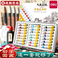 得力国画颜料初学者套装中国画国画用品工具全套12色水墨画小学生三年级初中生美术绘画24色配套材料包可水洗