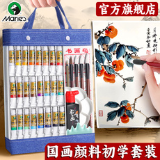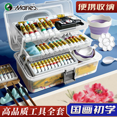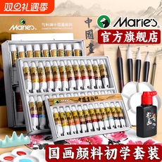 马利牌国画颜料初学者套装用品工具全套小学生专用12色水墨画材料工笔画24色中国画入门毛笔玛丽官方旗舰店