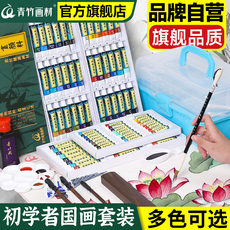 青竹国画颜料初学者套装12色24色国画用品工具全套水墨画工具套装中国画颜料入门工笔画小学生专用高级工笔画