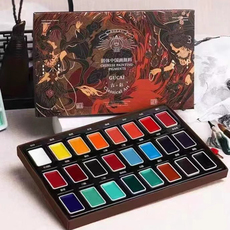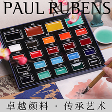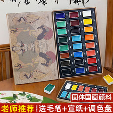 鲁本斯固体国画颜料24色初学者工具套装12色中国画水墨画古彩颜彩