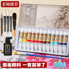 国画初学者套装中国画颜料12色24色水墨画工具套装国画用品全套材料小学生成人儿童传统国画专用入门正品颜料