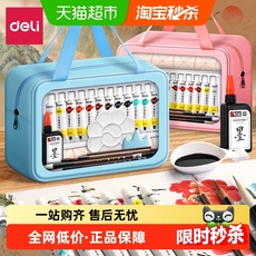 得力国画颜料初学者套装小学生中国画用品工具全套12色24色儿童入门专用水墨画工笔画毛笔宣纸美术材料收纳箱