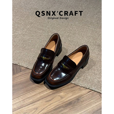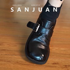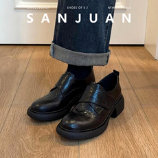 羊皮版sanjuan三卷厚底小皮鞋高跟复古英伦乐福鞋圆头粗跟单鞋