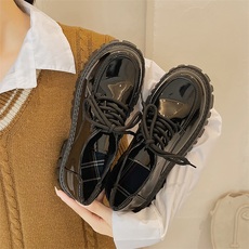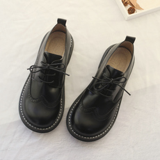 真皮英伦学院风厚底小皮鞋女秋冬日系jk百搭圆头黑色系带复古单鞋