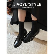 圆头厚底英伦乐福鞋女2025新款复古百搭jk正装单鞋黑色粗跟小皮鞋
