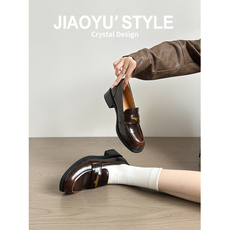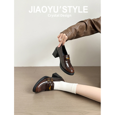 英伦风小皮鞋女2025新款秋冬百搭一脚蹬粗跟jk单鞋圆头厚底乐福鞋