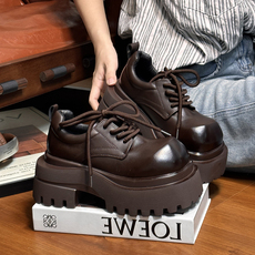 厚底老爹鞋女复古圆头增高皮鞋女深口小个子英伦风轻便软底休闲鞋