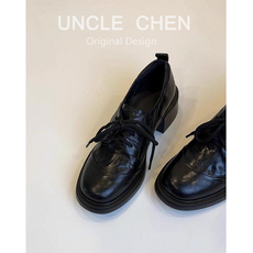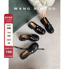 【王小毒】今天星期八●黑色小皮鞋女圆头英伦新款漆皮粗跟乐福鞋