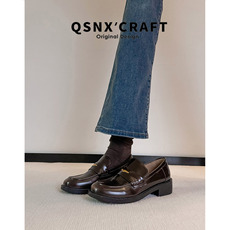 羊皮版sanjuan三卷厚底小皮鞋高跟复古英伦乐福鞋圆头粗跟单鞋