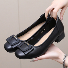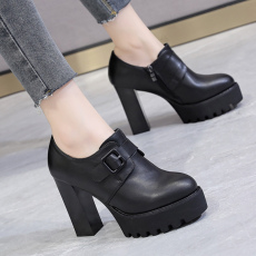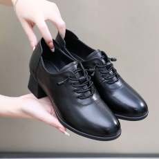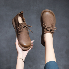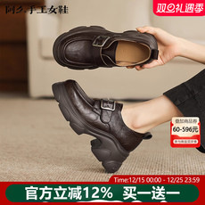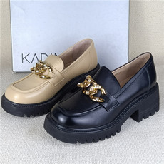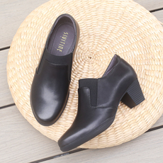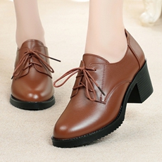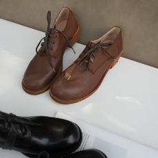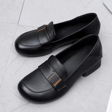 小洞天儿 > 圆头真皮单鞋女 粗跟