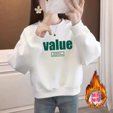 清仓捡漏品牌折扣秋季加绒加厚卫衣女士圆领宽松纯棉上衣冬季女潮