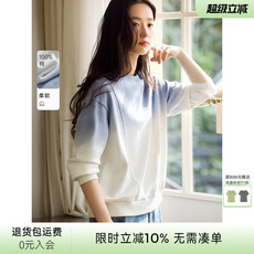 XWI欣未纯棉渐变蓝色卫衣女2026年春季新款圆领宽松休闲套头上衣