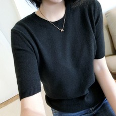 2025冬季新羊毛衫针织短袖女圆领镂空半袖宽松显瘦套头羊绒衫毛衣