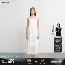 sdeer圣迪奥夏装女装木耳边碎褶绣花吊带连衣裙S24281238