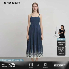 sdeer圣迪奥夏装女装田园风清新碎花收腰吊带连衣裙S24281218
